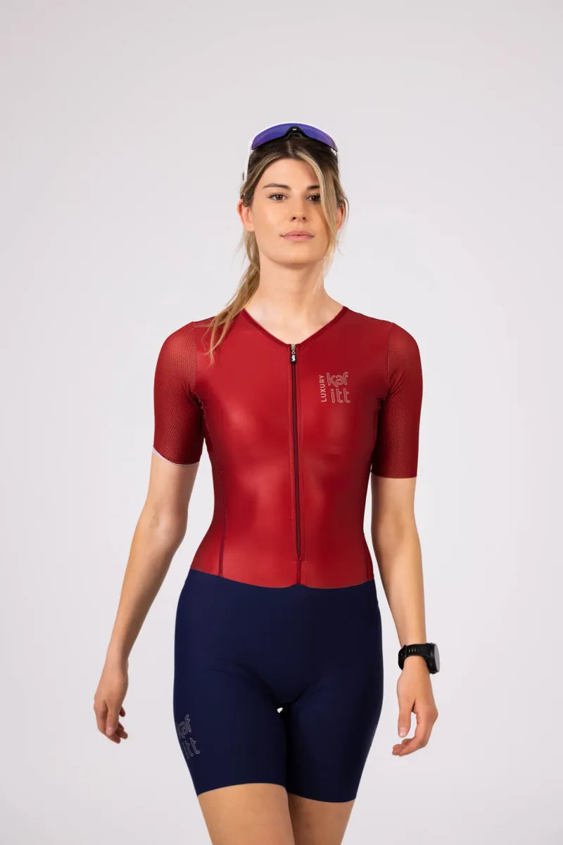 - Aerodynamic, slim fit that enhances the body’s shape